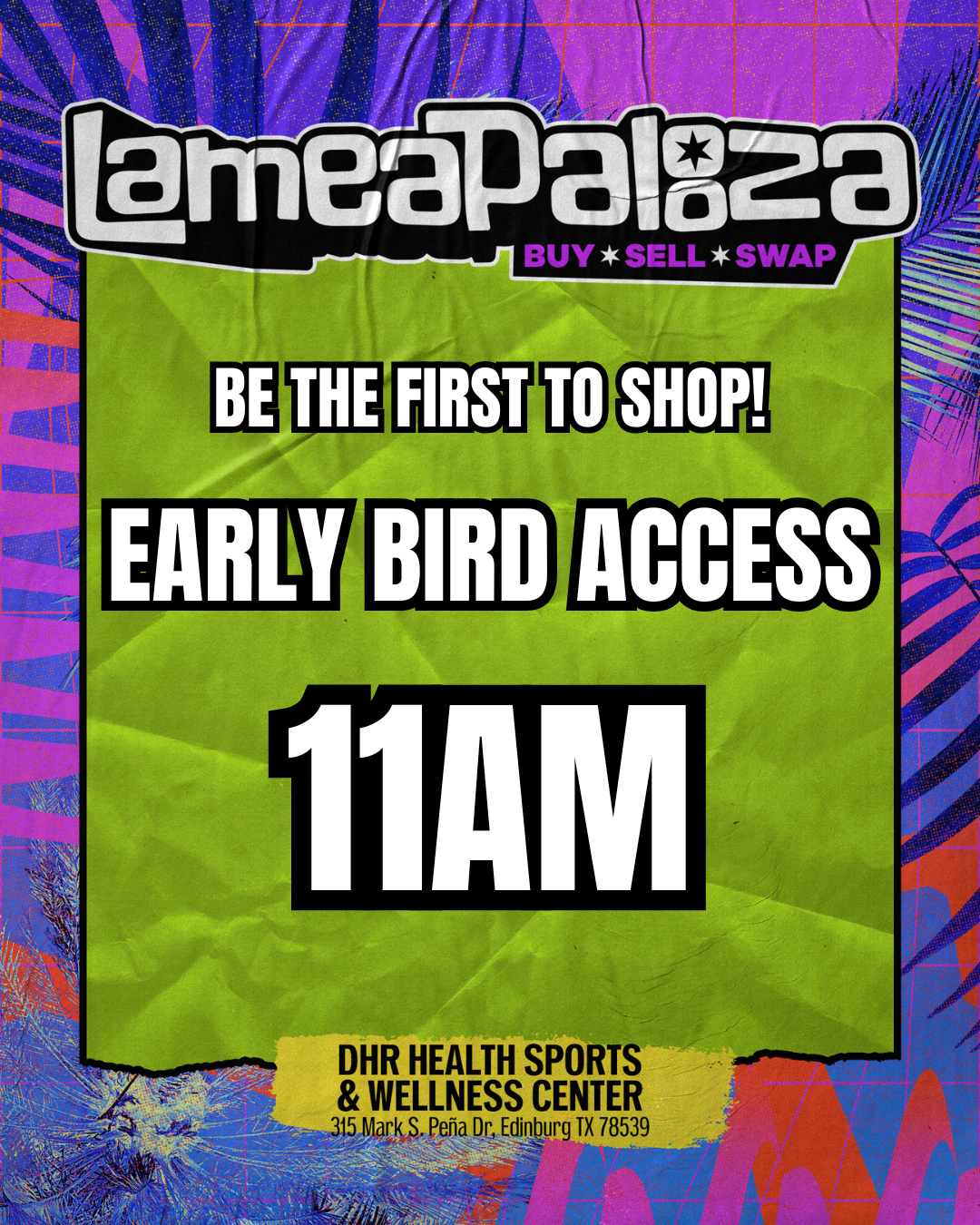 The ultimate BUY-SELL-SWAP event returns, bigger & better than ever! Saturday, March 21, 2026 LAMEAPALOOZA is taking over the DHR Health Sports & Wellness Center, Home of the RGV VIPERS!